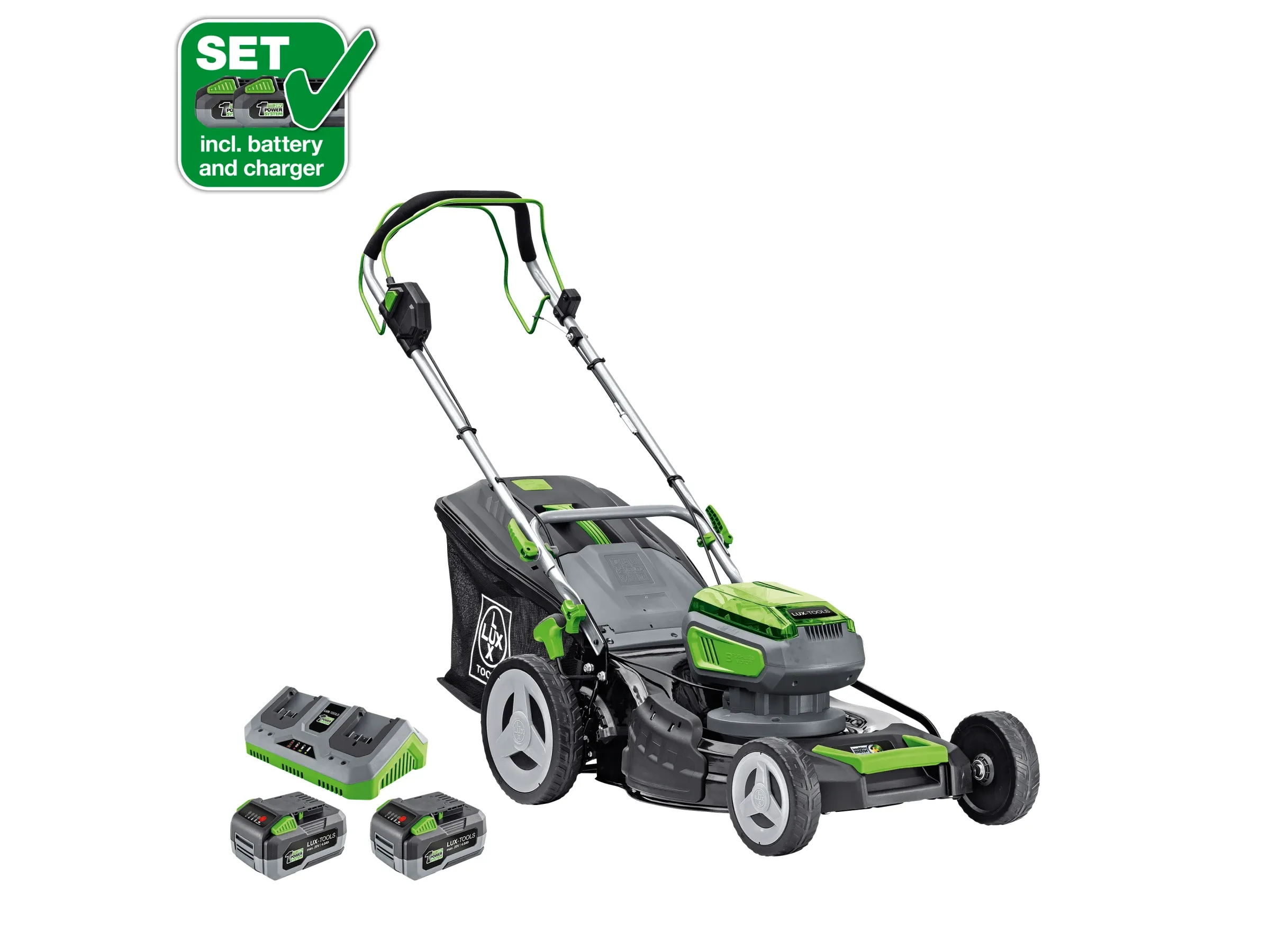 Leistungsstarker 40V Akku-Rasenmäher Set mit 2x 20V Batterien