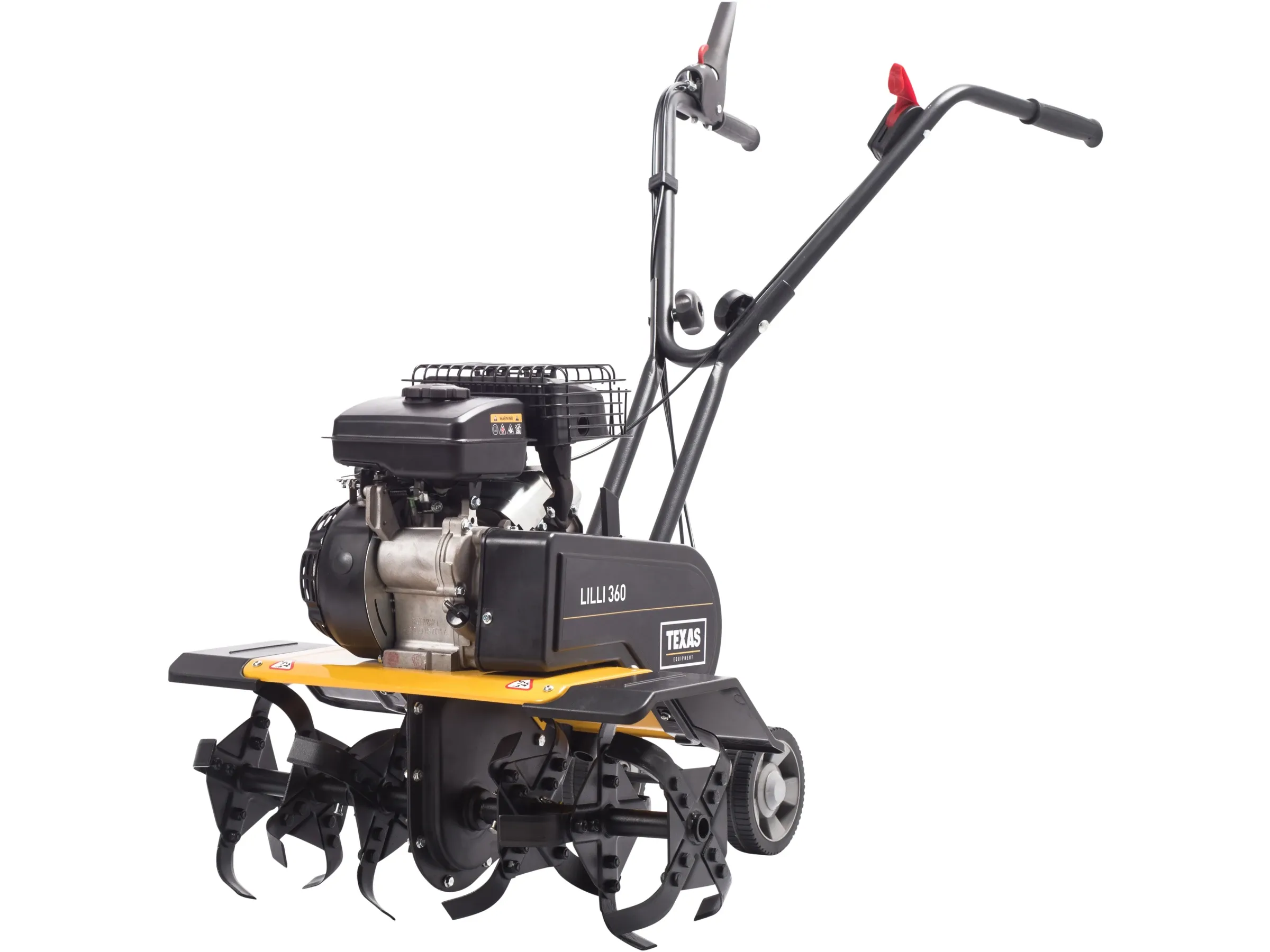Die Texas Benzin-Motorhacke Lilli 360TG eignet sich für den Gemüsegarten mit einer Arbeitsbreite von 40 - 60 cm. Das hintere Transportrad ermöglicht einfachen Transport. Die Umdrehungen pro Minute betragen 130, was einen stetigen Arbeitsablauf unterstützt.