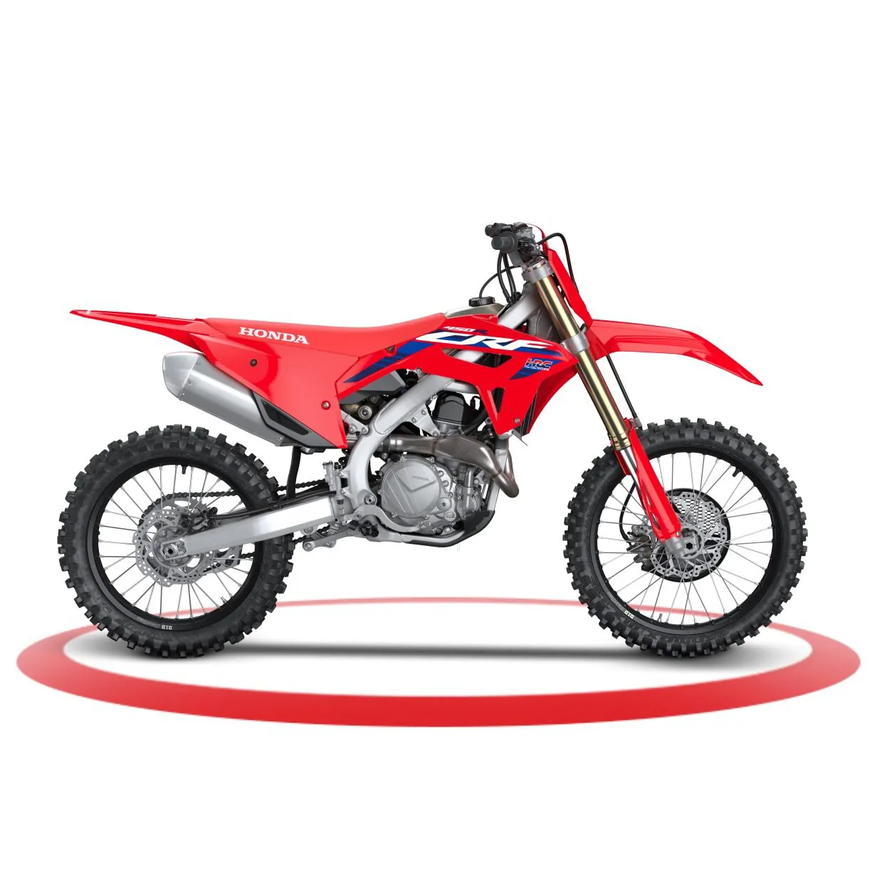 Der Radstand beträgt 58,3 Zoll, der Lenkkopfwinkel 27,1 Grad und der Nachlauf 4,5 Zoll. Die Sitzhöhe beträgt 38 Zoll und die Bodenfreiheit 13,2 Zoll. Der Benzintank fasst 1,7 Gallonen. Das Modell ist in der Farbe Rot erhältlich und trägt die Modellbezeichnung CRF450R.