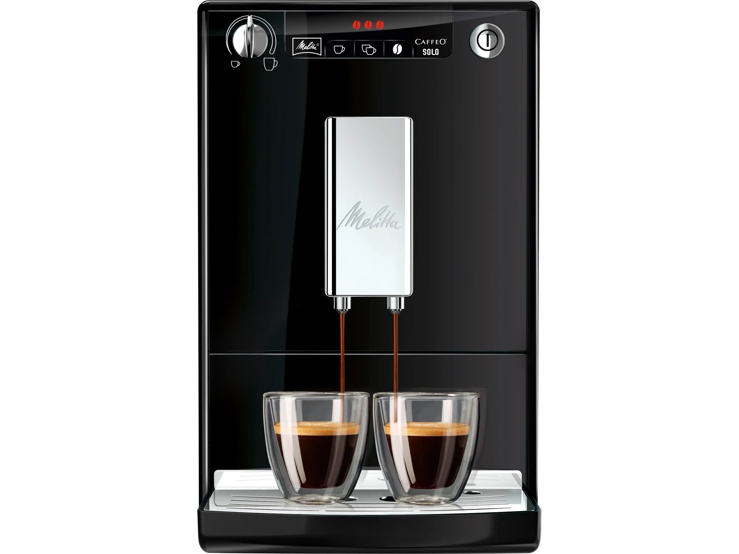 Der Melitta Caffeo Solo Kaffeevollautomat bietet frisch gemahlenen Kaffeegenuss. Mit drei einstellbaren Stärken werden Espresso und Café Crème auf Knopfdruck zubereitet.
