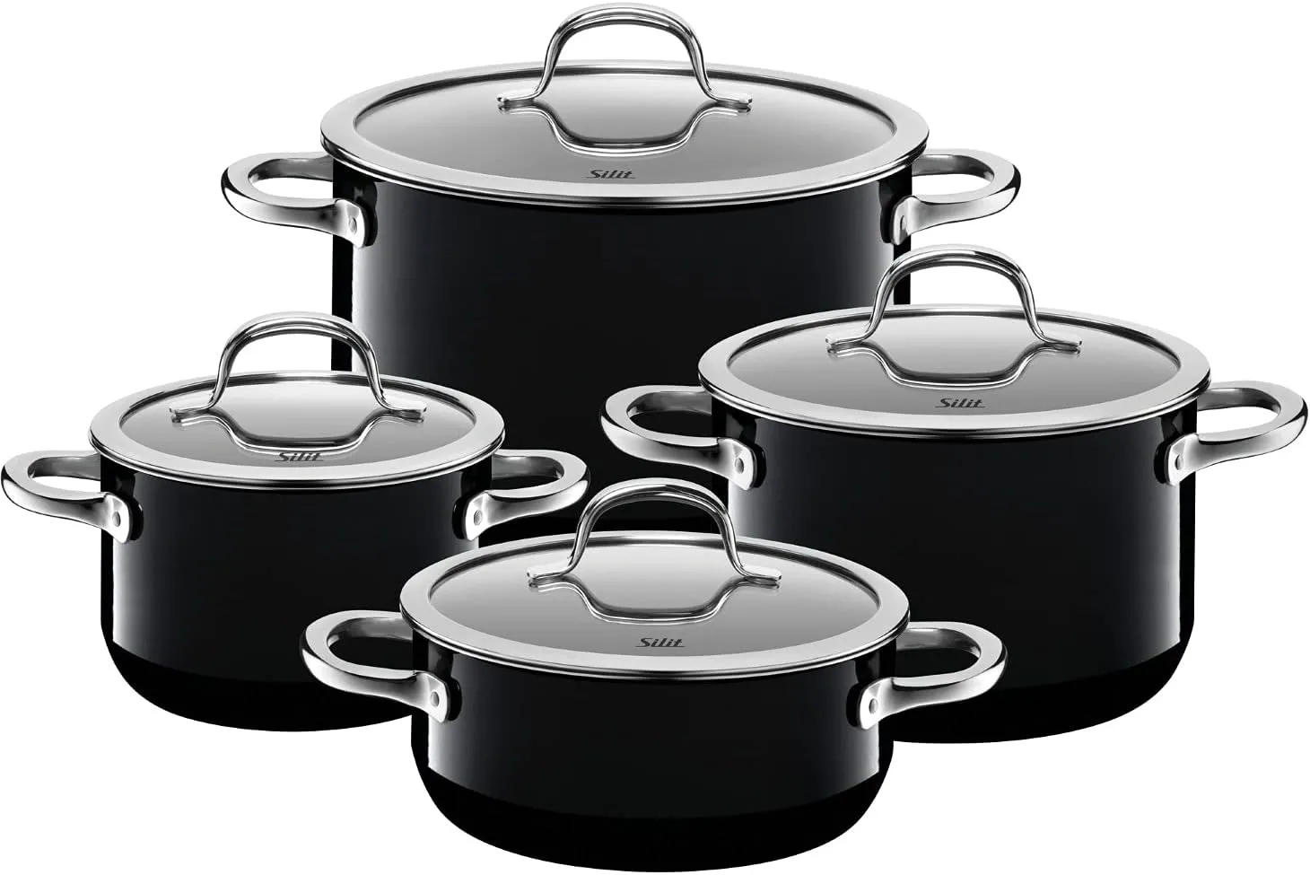 Silit Passion Kochtopfset 4-teilig, Induktionsgeeignet, Glasdeckel, Silargan, Schwarz