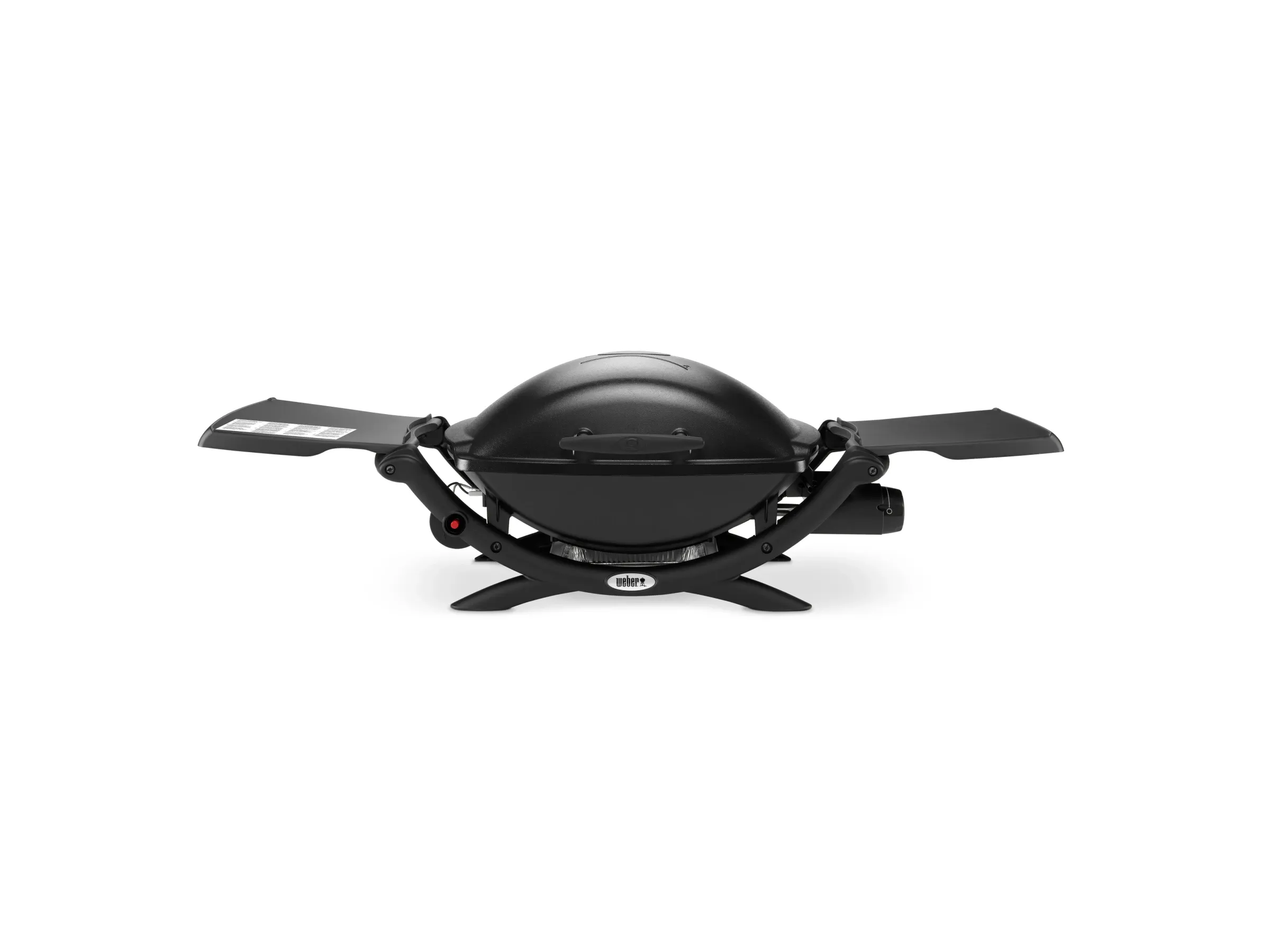 Der Grillrost aus porzellanemailliertem Gusseisen sorgt für gleichmäßige Wärmeverteilung. Das Gehäuse besteht aus Aluguss. Seitentische bieten Platz für Geschirr und Zutaten. Ein glasfaserverstärkter Nylonrahmen sorgt für Stabilität. Die Seitenflächen des Grills sind klappbar.